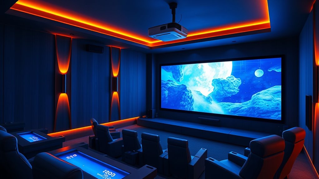 Yes, most of these systems can be integrated with smart home devices. I’ve found that many modern home theater setups are compatible with voice assistants like Alexa, Google Assistant, or Siri. You can control your system, lights, and even thermostats with a simple voice command. Just guarantee your home theater system supports smart integrations or has a compatible hub, making your entertainment experience seamless and convenient.